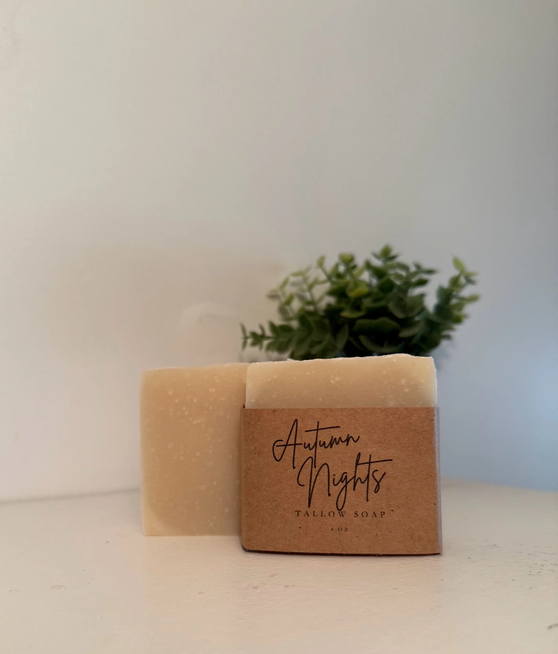 Autumn Nights Ingredients: Tallow, Pine Eucalyptus and Vanilla Essential Oil, Jojoba Oil, Olive Oil and Sodium Hydroxide